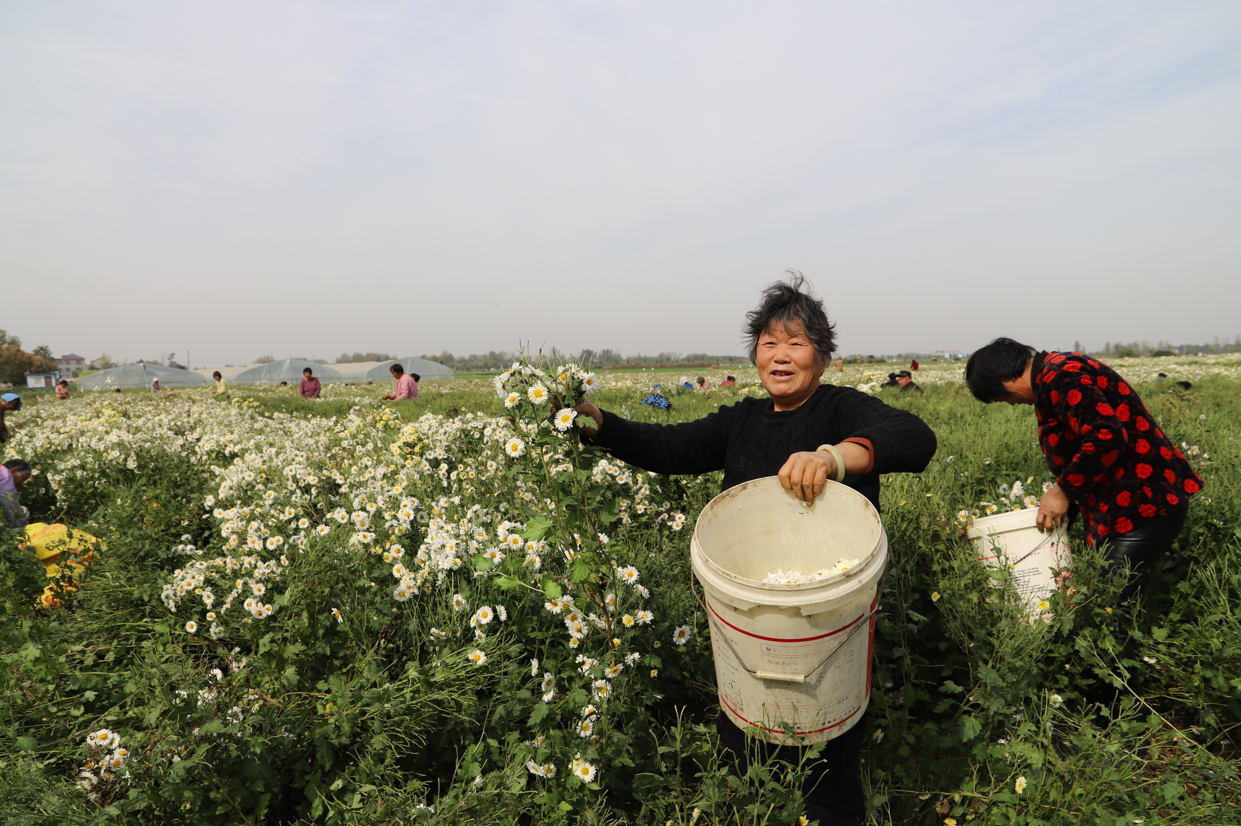 原來,菊花田的老板叫晉振中,于2018年從全縣脫貧攻堅(jiān)種植信息渠道得知種菊花能致富,銷售的末端是安徽亳州的藥材市場和一些花茶商家。特別是種植方式和平原種植紅薯一樣,把田地打成壟,栽苗、施肥、澆水、除草,9月份采摘一次、11月份采摘一次,剩下的菊花秸稈粉碎到田間作為肥料,還能種植晚小麥,十分方便。于是,他通過鎮(zhèn)村兩級黨員干部協(xié)助流轉(zhuǎn)了100畝土地,2019年就掙了20多萬元。由于晉菜園村是貧困村,在他的菊花田務(wù)工的勞動力大多是貧困戶,能帶動近百戶貧困戶脫貧致富,晉振中欣慰地覺得自己為脫貧攻堅(jiān)做了一份大貢獻(xiàn)。