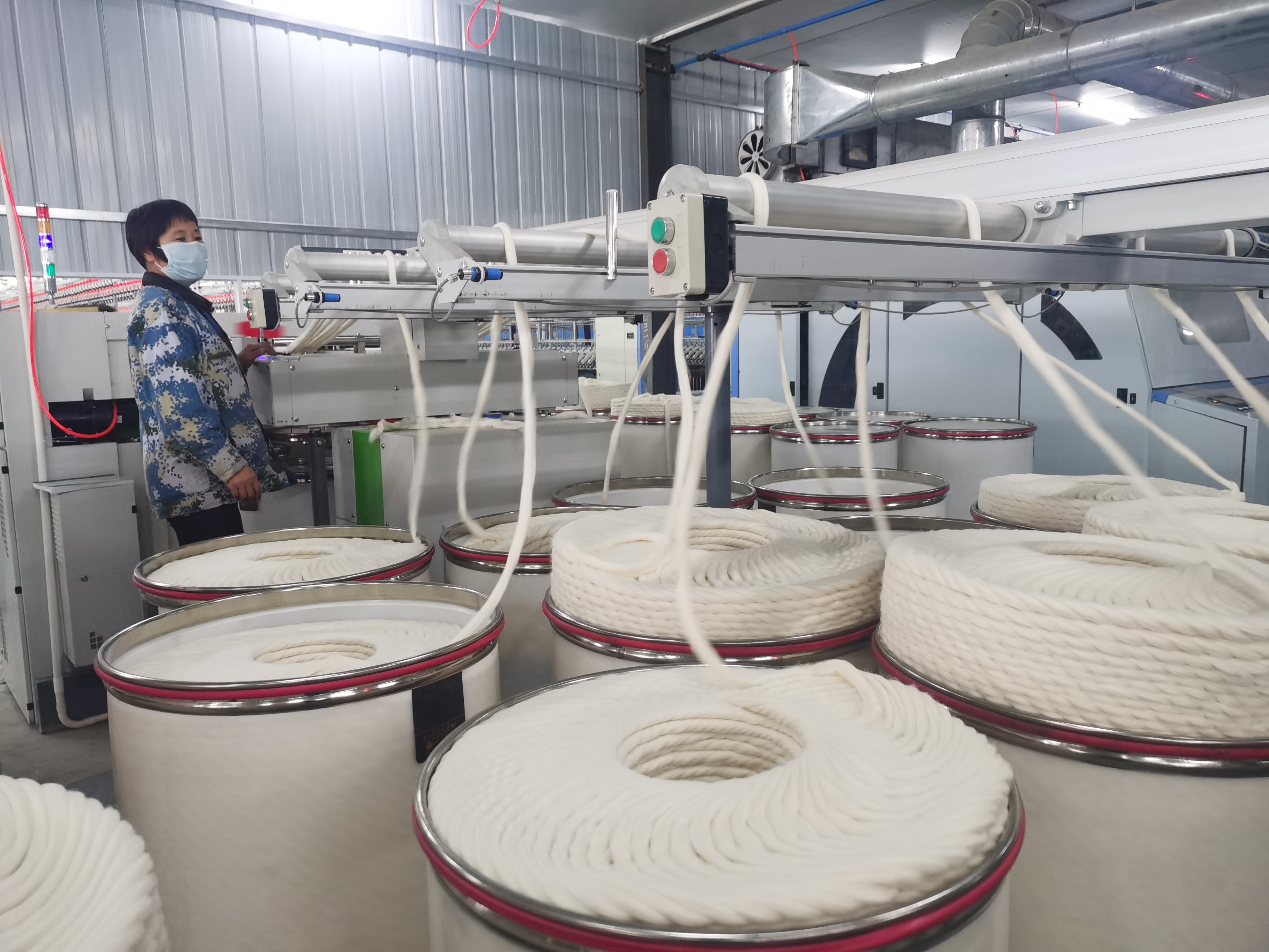 11月9日,扶溝縣博發(fā)紡織有限公司一期2萬(wàn)紗錠生產(chǎn)線進(jìn)口設(shè)備安裝完畢,正在試車。