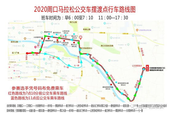 此外, 記者還從大賽組委會獲悉,2020周口馬拉松比賽公交車擺渡點(diǎn)行車路線圖也已公布,參賽選手憑號碼布可以免費(fèi)乘車,去時(shí)乘車路線為:文明路口——工農(nóng)路口——大慶路停車點(diǎn)——慶豐街——景園停車點(diǎn)——奧蘭停車點(diǎn)——公務(wù)員A區(qū)停車點(diǎn)——建業(yè)北門停車點(diǎn)周口大道——碧桂園停車點(diǎn)——堤頂北路——武盛大道——引黃調(diào)蓄風(fēng)景區(qū)門口擺渡車乘車起點(diǎn);回來時(shí)路線為:引黃調(diào)蓄風(fēng)景區(qū)——武盛大道——堤頂北路——碧桂園停車點(diǎn)——周口大道——慶豐街——建業(yè)北門停車點(diǎn)——公務(wù)員A區(qū)停車點(diǎn)——奧蘭停車點(diǎn)——景園停車點(diǎn)——大慶路停車點(diǎn)——七一路,其中班車運(yùn)行時(shí)間為早6:00至7:10,11:00至17:30。因場地受限,活動當(dāng)天的停車區(qū)域分為兩處,一是引黃調(diào)蓄風(fēng)景區(qū)西門南北兩側(cè)便道;二是風(fēng)景區(qū)西門向南路西600米處東西無名路。
