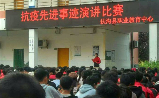 這是扶溝縣職業(yè)教育中心2020級美術(shù)班賈珍珍同學的激情演講。他的演講,感染了在場的1000余名師生。11月14日,為落實扶溝縣教體局《關于加強新時代中小學思想政治理論課教師隊伍建設工作的實施方案》中“發(fā)掘地方資源,開展先進人物和紅色教育進課堂活動,讓思政課成為有溫度的課”的具體要求,學校思政處組織開展了以歌頌該縣人民醫(yī)院護士劉海燕先進事跡為主題的“抗疫先進事跡”演講比賽。