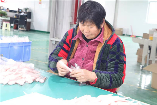 11月25日,家住鹿邑縣張店鎮(zhèn)劉莊村的孫小懶像往常一樣,吃過早餐后就到村里的河南雅彩美妝用具有限公司套管車間上班?!斑M廠務(wù)工一人,穩(wěn)定致富一家”這句話正是孫小懶家的真實寫照。前幾年,孫小懶的丈夫因病去世后,撇下三個兒子,最大的今年讀高中,最小的還在讀小學,主要勞動力的缺失讓孫小懶一家人的生活陷入困境。