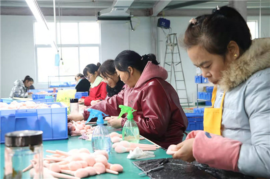河南雅彩美妝用具有限公司負責人趙廣才介紹,公司主要從事化妝刷、美妝用具加工,十分適宜留守婦女干。車間里的工人基本都是貧困戶和住在附近的留守婦女。在家門口上班,既能掙錢,又方便照顧家人。每天中午公司還提供午餐,工人早上來上班,下午下班不耽誤回家照看孩子?!拔疑习嘁呀?jīng)10多天了,再過不久,就可以領(lǐng)工資了,真是高興!”68歲的村民張美榮告訴記者,家里孩子們都大了,自己在家閑著也沒啥事,她就到包裝車間上班,一個月算下來能掙2000多元,活也不重,既鍛煉了身體,又提高了家庭收入。