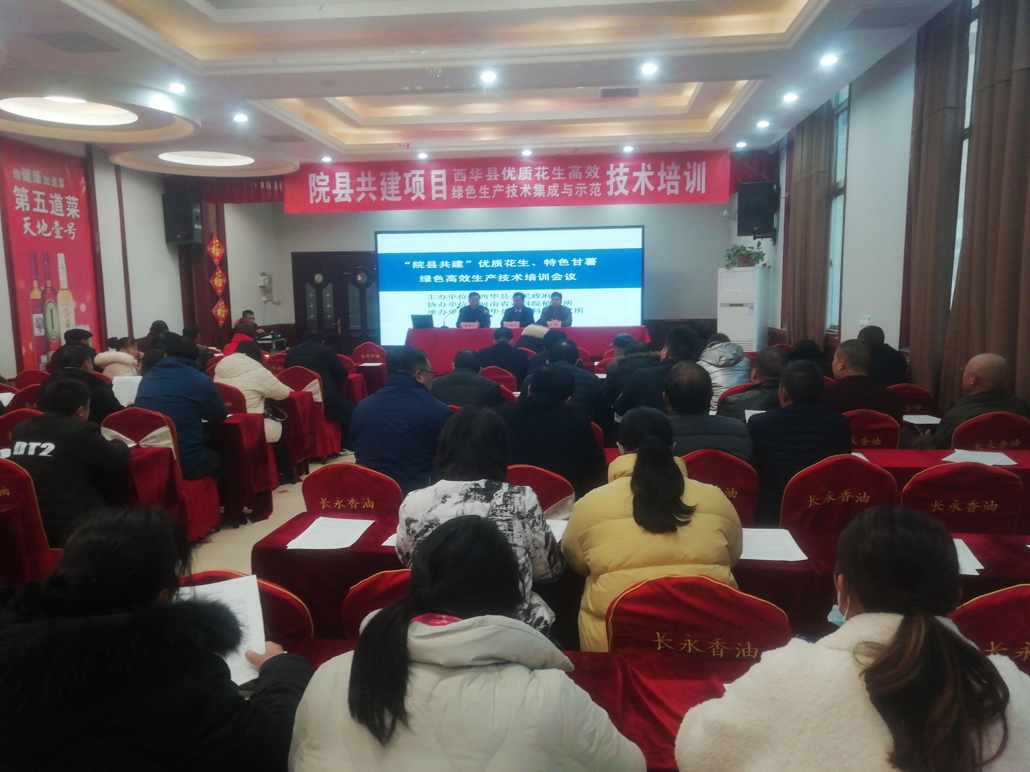 12月7日上午,院縣共建項(xiàng)目西華縣優(yōu)質(zhì)花生高效綠色集成與示范技術(shù)培訓(xùn)會(huì)及現(xiàn)代農(nóng)業(yè)科技綜合示范縣項(xiàng)目西華縣甘薯安全貯藏和葉用甘薯生產(chǎn)技術(shù)培訓(xùn)在西華縣溫哥華一樓會(huì)議室舉辦。來自全縣各鄉(xiāng)(鎮(zhèn))、辦事處分管農(nóng)業(yè)副職,農(nóng)業(yè)經(jīng)營(yíng)主體代表及種植大戶100多人參加會(huì)議。