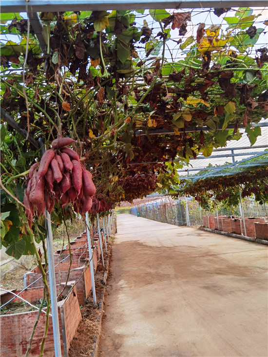 西華縣農(nóng)科所積極開展“空中結薯”試驗種植研究,并取得成功?!翱罩薪Y薯”采取嫁接技術,選用旋花科植物牽牛作砧木,脫毒薯苗作接穗嫁接而成,嫁接成活后栽到土壤里,搭建棚子,加強薯苗水肥管理,每株插一根小竹木桿,促進薯苗快速生長上棚,在棚上吊花盆,盆內(nèi)放蛭石,生長到掤上的薯秧壓到花盆里,加強水肥管理。90天結薯,進入10月份把花盆去掉。該技術打破傳統(tǒng)栽培方式,主要為公園、科技園區(qū)、農(nóng)業(yè)生態(tài)觀光園、家庭庭院內(nèi)培植,有很好的科研價值、觀賞價值和農(nóng)業(yè)推廣價值。周口日報·周道客戶端記者李鳳霞 攝