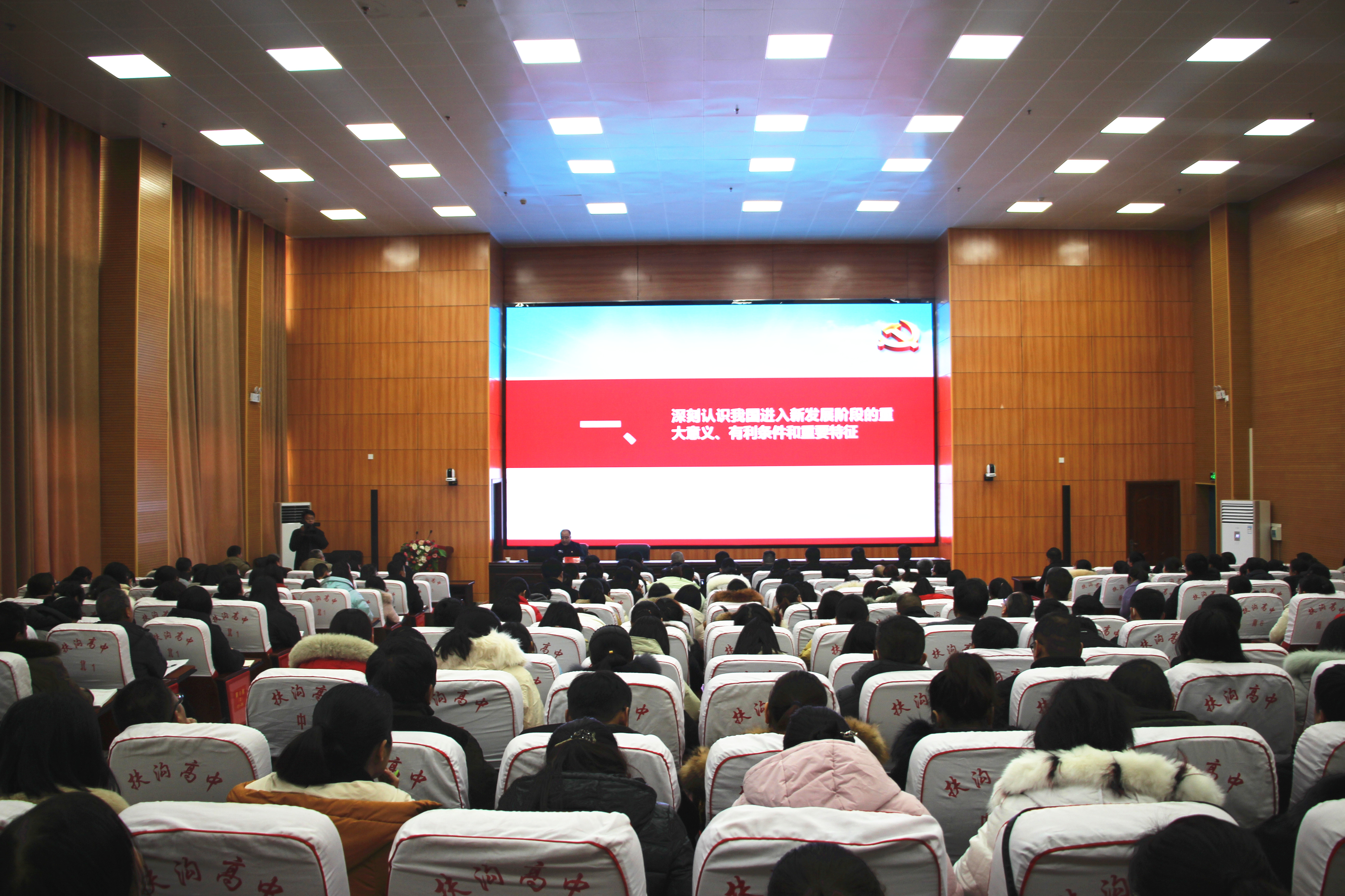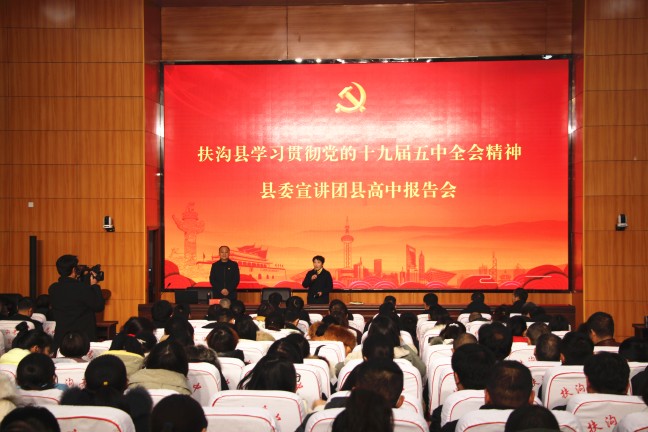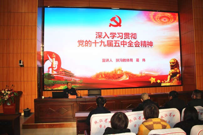 12月12日下午,扶溝縣高中德馨樓七樓會議室掌聲陣陣、座無虛席,扶溝縣學(xué)習(xí)貫徹黨的十九屆五中全會精神縣委宣講團縣高中報告會正在這里舉行,宣講會特邀縣教體局黨組書記葛偉進行宣講,局機關(guān)班子成員,縣高中班子成員和400余名教師參加了宣講會。