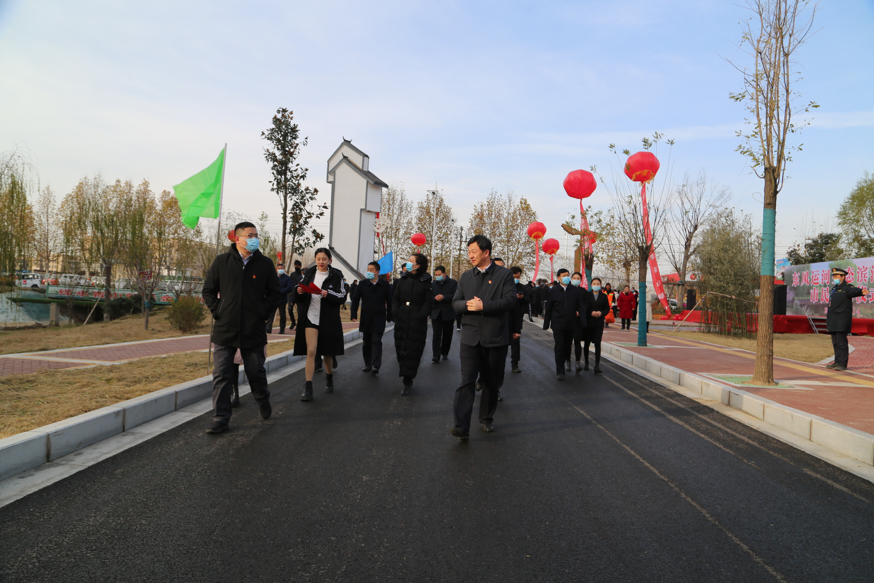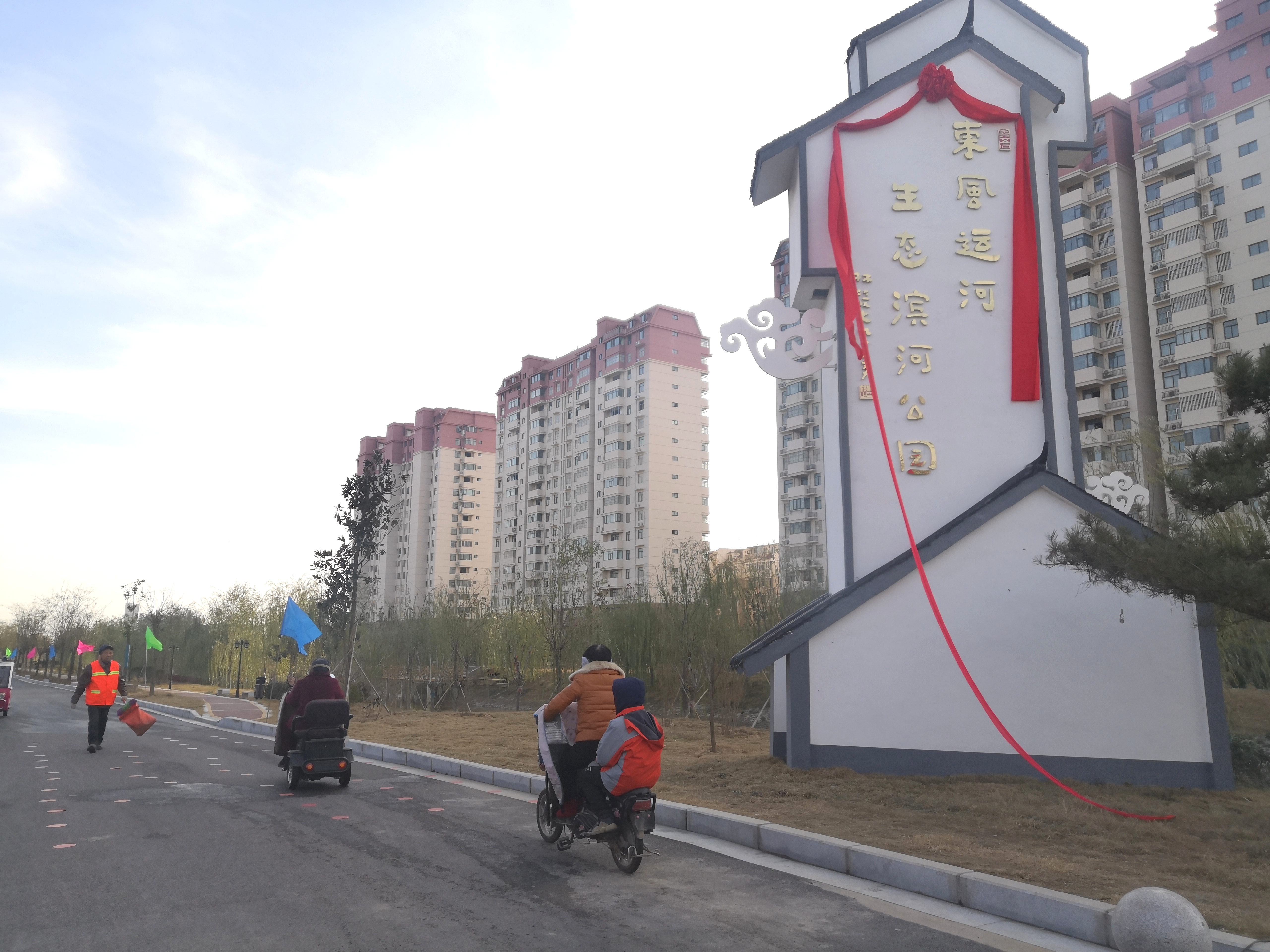 東風運河生態(tài)濱河公園為周邊居民提供一個集體育運動、休閑娛樂為一體的綜合性濱河公園,極大的提升周邊居民生活幸福感。運河的兩岸居民為家門口新增一處公園而感到興奮,他們紛紛冒著寒風趕來參觀,在這里拍照留念,這里成了西華市民的又一處網(wǎng)紅打卡地。