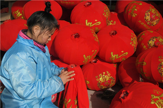 12月15日,商水縣魏集鎮(zhèn)“燈籠專業(yè)村”黨橋村的村民在利用冬閑時間制作燈籠。該鎮(zhèn)按照“一鄉(xiāng)一業(yè)、一村一品”的產(chǎn)業(yè)發(fā)展要求,推動全鎮(zhèn)特色產(chǎn)業(yè)落實(shí)落地。黨橋村在鎮(zhèn)黨委、鎮(zhèn)政府支持下,建成扶貧車間,大力發(fā)展燈籠制作產(chǎn)業(yè)。全村有近百戶村民從事燈籠制作工作,他們憑借勤勞的雙手脫貧致富奔小康,把日子過得紅紅火火。②8