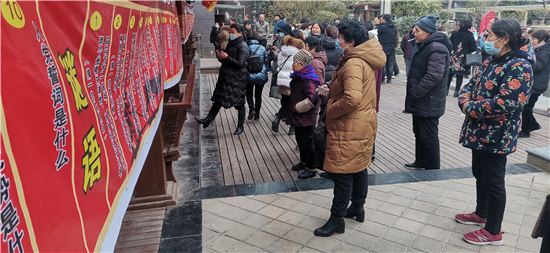一大早,來自川匯區(qū)文聯(lián)、區(qū)民協(xié)的工作人員,將金色東方社區(qū)的休閑廣場(chǎng)裝扮得格外喜慶,兩條帶有傳統(tǒng)紋飾圖案的噴繪印著謎語和黨的知識(shí),掛在休閑長(zhǎng)廊上,吸引著出來曬太陽或散步的居民。區(qū)文聯(lián)黨組書記史濤,區(qū)文聯(lián)黨組成員、副主席游富華,區(qū)人和辦事處副書記武陽,市民協(xié)副主席羅營東、區(qū)民協(xié)主席杜超,區(qū)民協(xié)秘書長(zhǎng)任建明等走進(jìn)社區(qū),參加這場(chǎng)活動(dòng)。“中國共產(chǎn)黨是什么時(shí)候成立的?”“1921年7月23日”“答對(duì)了,獎(jiǎng)洗衣液一壺!”游富華以問答的形式和居民們互動(dòng),向居民們普及黨的知識(shí),居民們紛紛參與,氣氛活躍。