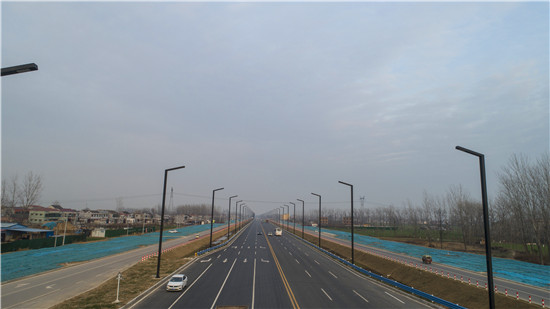 升級改造后的周淮路快速通道,不僅寬闊平坦、視野更遠,而且還新增了慢車道、人行通道、防護欄板、公交港灣、景觀渠和綠色長廊等,尤其是目前施工已接近尾聲的照明工程,燈桿隨路而行、整齊劃一、色彩厚重,如同行道樹在恭迎游客和游子。②9周口日報·周道客戶端記者杜洪亮 房杰 攝