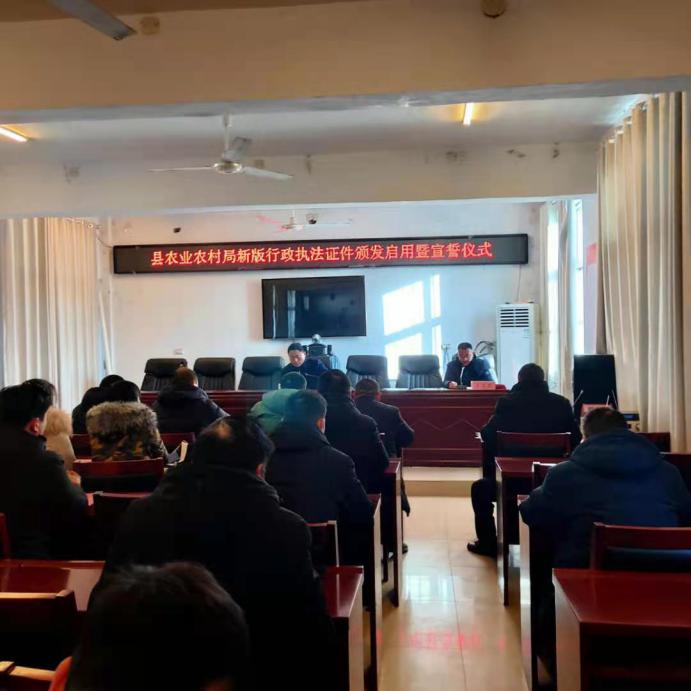 “我鄭重向祖國、向人民宣誓:忠于國家,忠于人民,忠于憲法和法律;堅(jiān)持執(zhí)法為民,堅(jiān)持依法行政,維護(hù)公平正義;以維護(hù)人民群眾利益、維護(hù)法律權(quán)威為已任,有法必依,違法必究,認(rèn)真履行法定職責(zé)?!?2月31日上午9時(shí),鹿邑縣農(nóng)業(yè)農(nóng)村局在三樓會(huì)議室召開新版農(nóng)業(yè)綜合行政執(zhí)法證件頒發(fā)啟用暨宣誓儀式大會(huì)。該局局長陳東振為51名執(zhí)法人員辦法了新版行政執(zhí)法證并提出具體要求。副局長丁文杰主持宣誓儀式大會(huì)并領(lǐng)誓。
