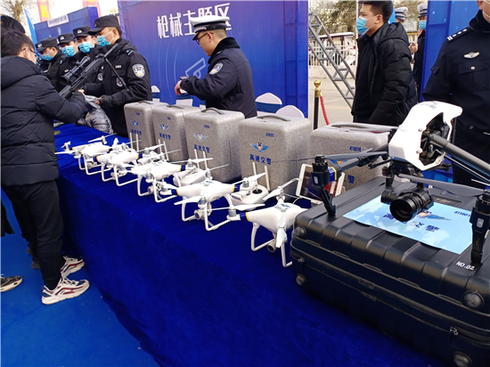 活動現(xiàn)場設(shè)置了“反假幣主題區(qū)”“消防主題區(qū)”“防電詐主題區(qū)”“禁毒主題區(qū)”“互動區(qū)”等形式多樣的功能展示區(qū),現(xiàn)場接受群眾咨詢,與市民深度互動,讓市民近距離體驗、全面感受人民警察的日常工作。除此之外,民警還進行了槍械展示、無人機展示等內(nèi)容。
