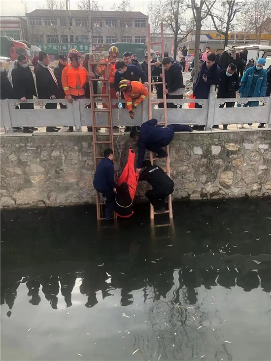 1月10日12時(shí)左右,鹿邑縣公安局特巡警大隊(duì)東關(guān)警亭值班人員,接到指揮中心指令稱(chēng):苑家園北側(cè)護(hù)城河里有一名女子落水。接到報(bào)警后,帶班隊(duì)長(zhǎng)武偉迅速帶領(lǐng)特警隊(duì)員姚留地、張景濤、倪亞彬等人趕到現(xiàn)場(chǎng)。