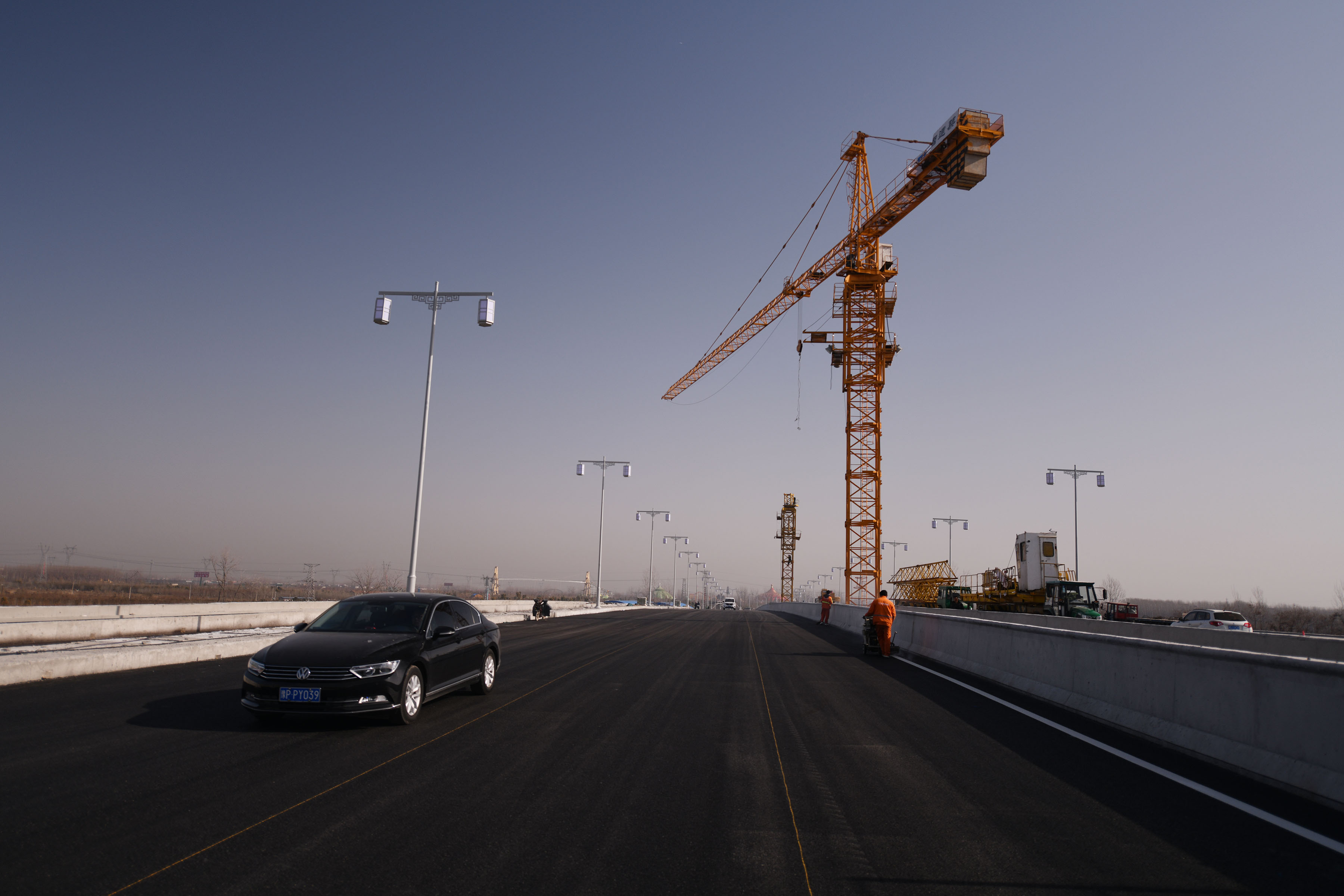 大橋主道柏油路面已經(jīng)完工
