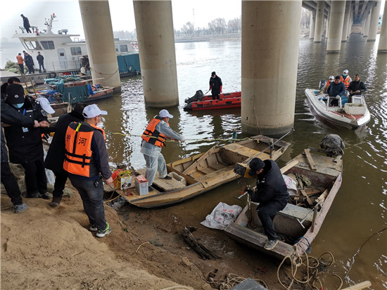 1月20日上午9時許,沙潁河周口中州路橋頭,多艘快艇和漁政執(zhí)法船集結完畢,來自市公安局水上分局、市農業(yè)農村局漁政執(zhí)法以及孝慈文化促進會的志愿者、川匯區(qū)民間河長等40余人分乘執(zhí)法船,開展聲勢浩蕩的聯(lián)合執(zhí)法查處行動。