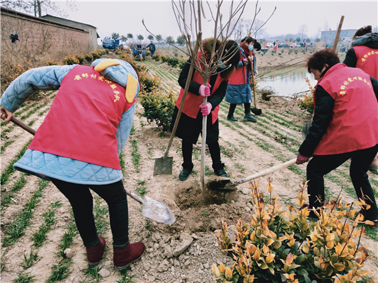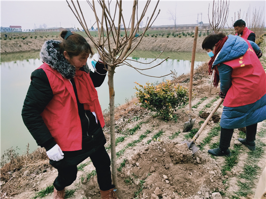 1月20日,西華縣奉母鎮(zhèn)前邵村的愛心服務(wù)隊在水塘邊種植紅玉蘭、紅葉石楠等景觀樹,為建設(shè)中的親子樂園搞景觀綠化。為探索鄉(xiāng)村振興的新路子,前邵村整合100余畝閑置集體土地,組織本村村民大量種植,將村里幾十套廢舊的老房子改造成村史館、農(nóng)耕文化館、民宿等,全力打造集鄉(xiāng)村旅游、農(nóng)耕體驗、民宿經(jīng)濟、親子游學教育基地等于一體的生態(tài)田園綜合體,引領(lǐng)廣大農(nóng)戶共同發(fā)展致富。