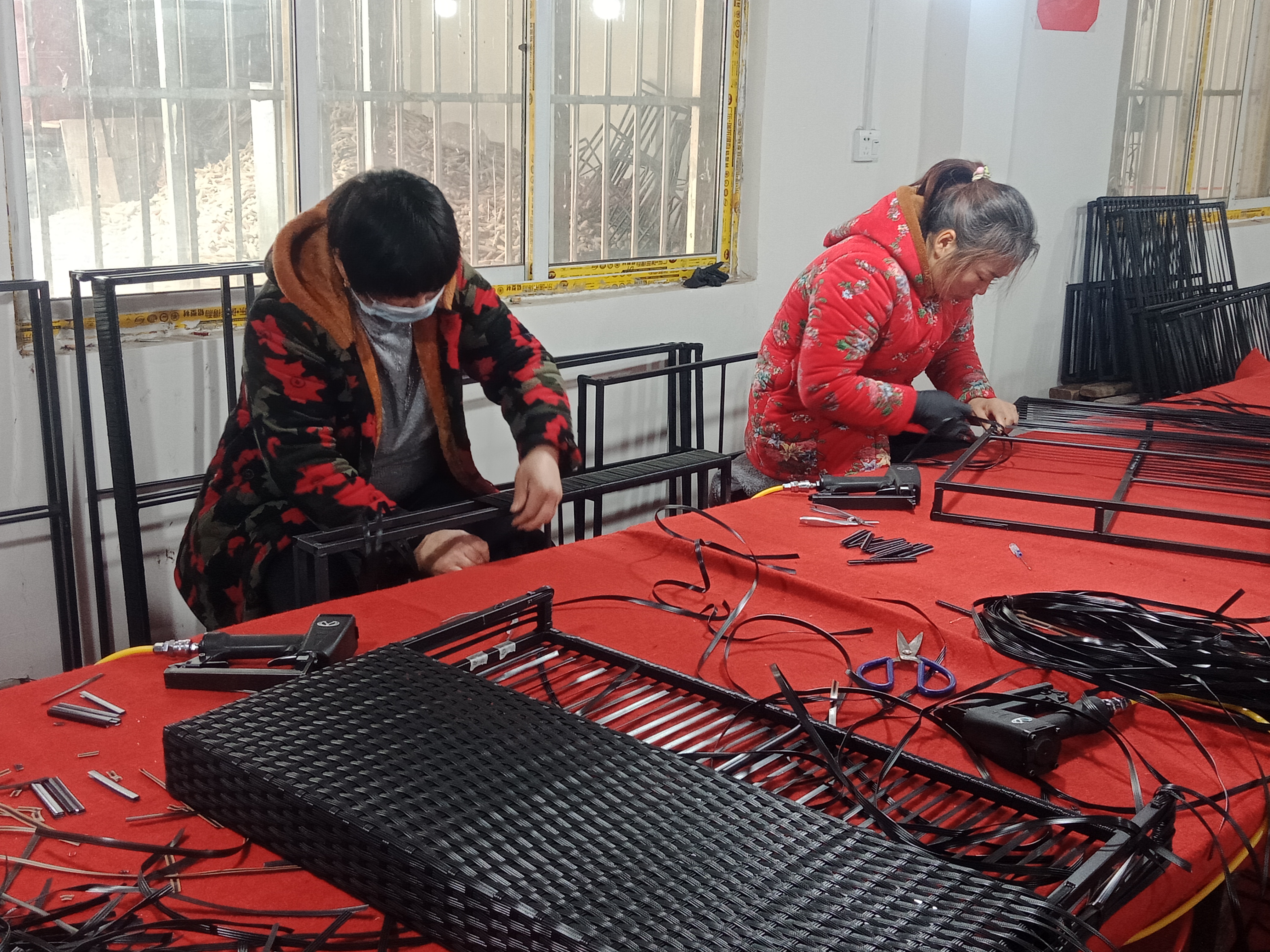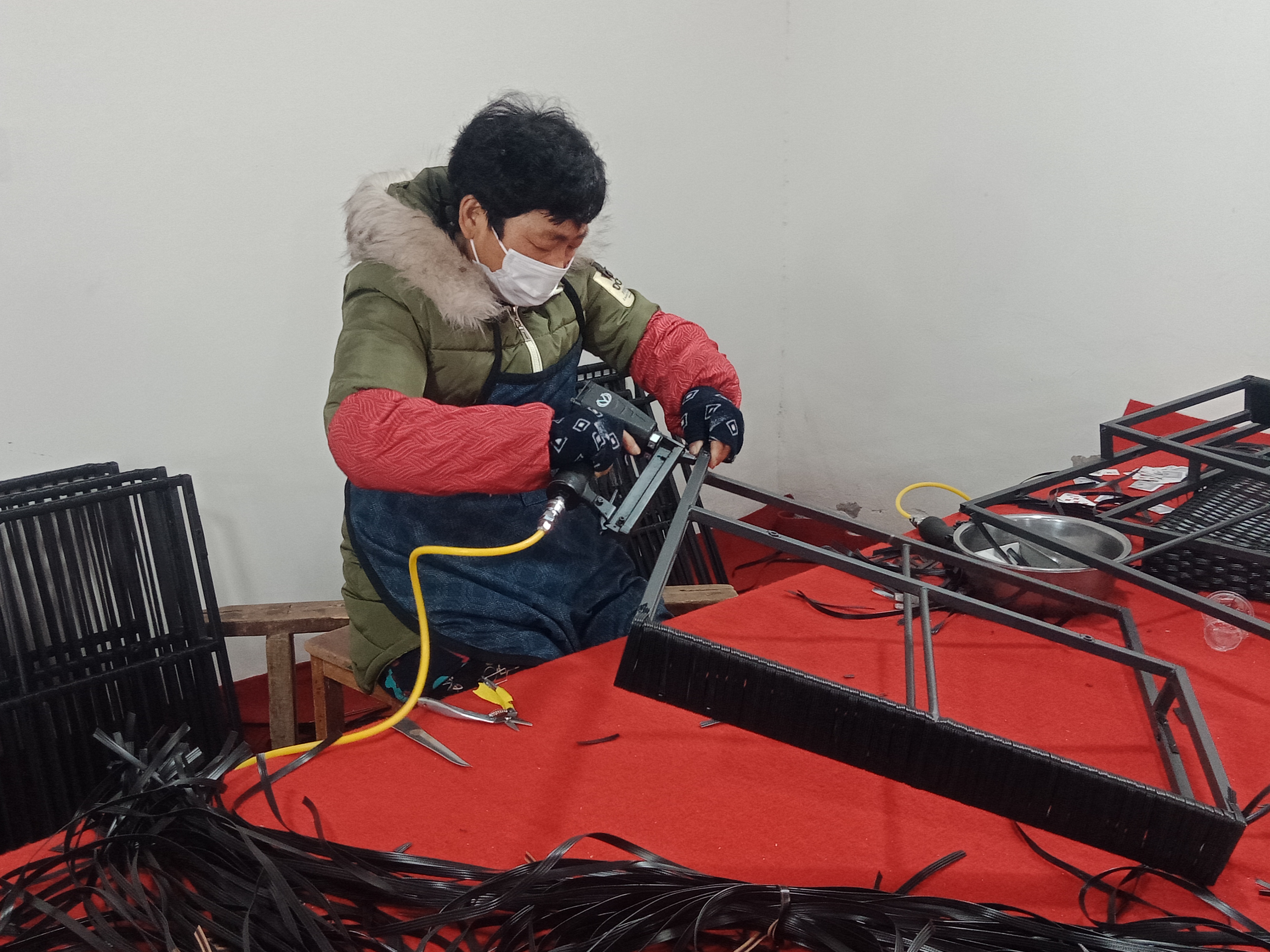 戶外藤編沙發(fā)巧媳婦工程加工車間是商水縣袁老鄉(xiāng)賈寨行政村村委為幫村民脫貧致富而引進的,生產為訂單作業(yè),產品多數銷往國外。該村加工車間是今年1月開工的。