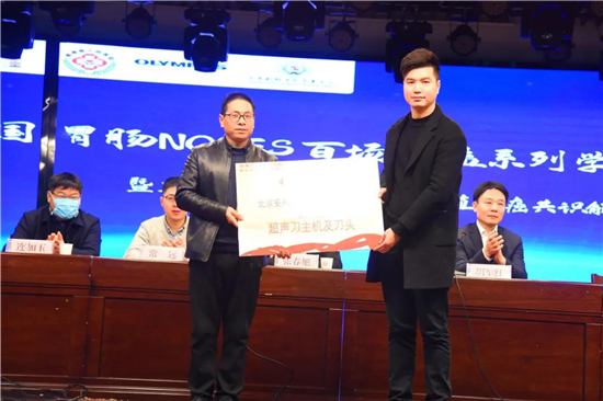 楊雨旺書(shū)記介紹了鄲城縣人民醫(yī)院胃腸外科的基本情況以及在近年發(fā)展中取得的長(zhǎng)足進(jìn)步。胡軍紅教授在致辭中指出,NOSES作為一種微創(chuàng)中的微創(chuàng)手術(shù),是一種醫(yī)患共贏的好技術(shù),是未來(lái)微創(chuàng)外科發(fā)展的趨勢(shì)和方向之一。他對(duì)不辭勞苦開(kāi)展公益學(xué)術(shù)講座,推廣NOSES理念和技術(shù)的各位專(zhuān)家表示感謝,同時(shí)預(yù)祝系列學(xué)術(shù)活動(dòng)圓滿(mǎn)成功。 中國(guó)胃腸NOSES聯(lián)盟向鄲城縣人民醫(yī)院贈(zèng)送了《胃腸手術(shù)策略與操作圖解》等專(zhuān)業(yè)書(shū)籍20本和超聲刀一套。
