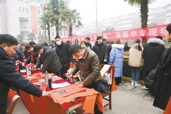 1月23日上午,項城市中等專業(yè)學校、市書法家協(xié)會聯(lián)合開展了“我們的節(jié)日——義寫春聯(lián)進校園”活動,黃樹民等6位書法家受邀來校為廣大師生義務書寫春聯(lián)。師生代表紛紛請名家為自己寫春聯(lián),整個活動洋溢著歡樂祥和的氣氛。“我們的節(jié)日——義寫春聯(lián)進校園”活動不僅繼承和發(fā)揚了中華優(yōu)秀傳統(tǒng)文化,而且豐富了在校師生的精神文化生活,助力了書香校園建設,堅定了師生的文化自信。 李立云 郭新明 攝