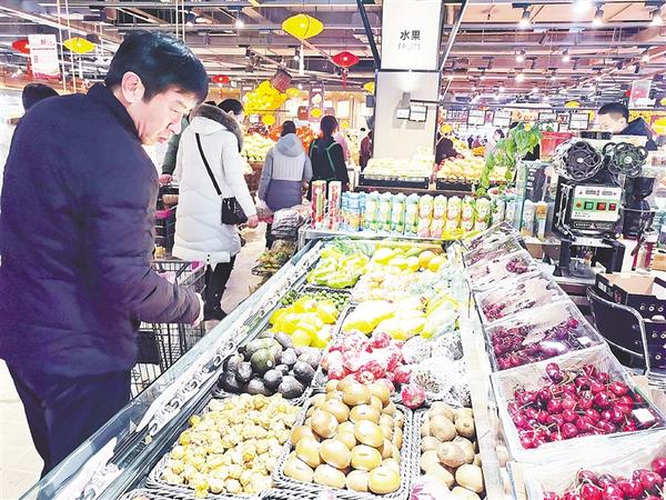 臨近春節(jié),我市水果市場迎來了銷售的旺季,各大超市、水果市場內,水果品種豐富、供應充足,大部分國產水果價格都相當“親民”。圖為市民在選購水果。記者 孫安平 攝