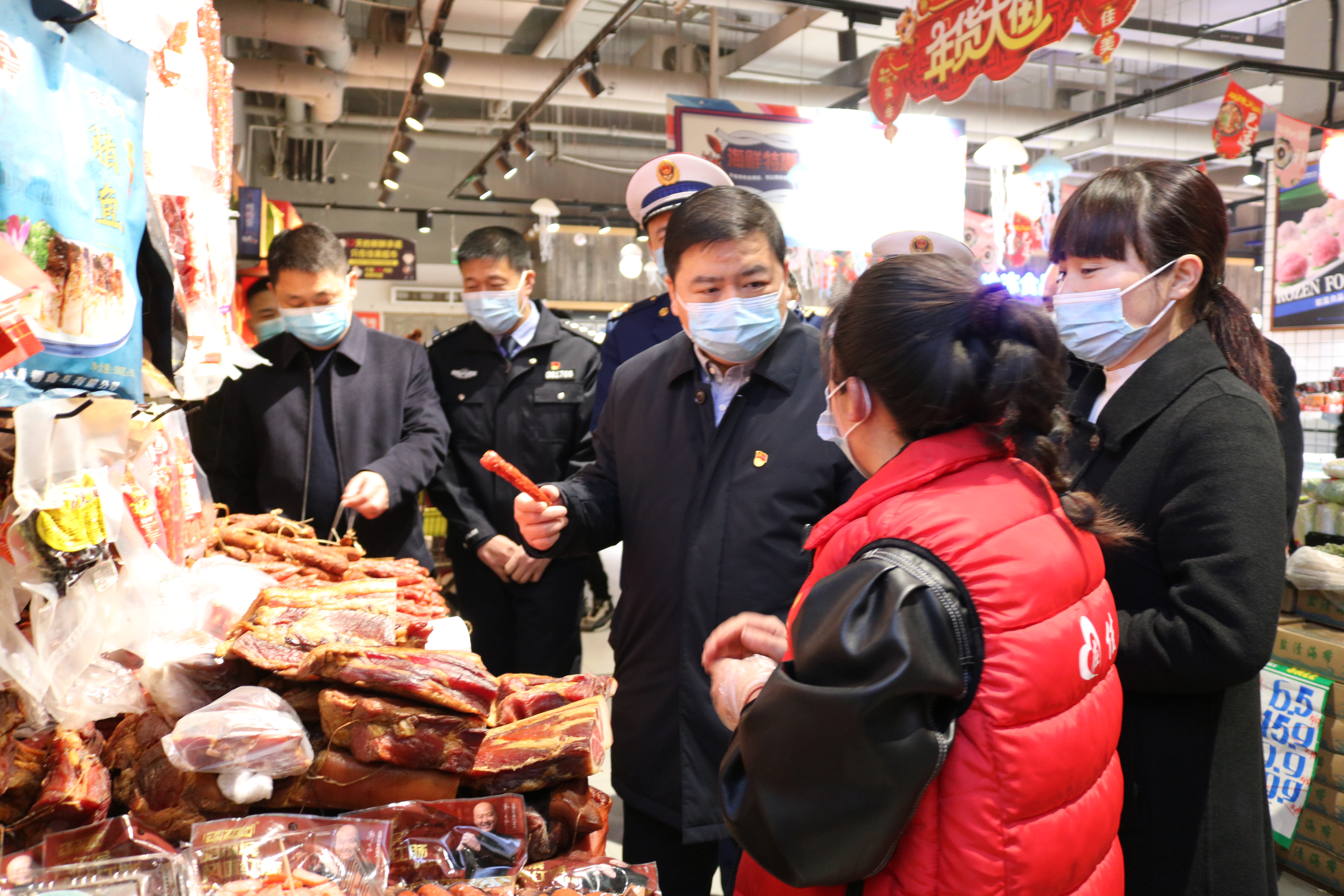 在佳美新時(shí)代超市,李剛來到食品區(qū)、生鮮區(qū)、綜合區(qū),了解節(jié)前物資供應(yīng)、商品價(jià)格、食品安全等情況。李剛指出,臨近春節(jié),采購年貨的人多,人員流通性大,疫情防控工作絲毫不能放松,要高度重視春節(jié)期間食品安全及市場(chǎng)供應(yīng)情況,加大監(jiān)管和巡查力度,加強(qiáng)監(jiān)測(cè)和調(diào)控手段,確保價(jià)格平穩(wěn)。同時(shí)要保持消防通道暢通、定期檢修消防器材、排除安全隱患,讓群眾過一個(gè)平安、愉快、祥和的節(jié)日。