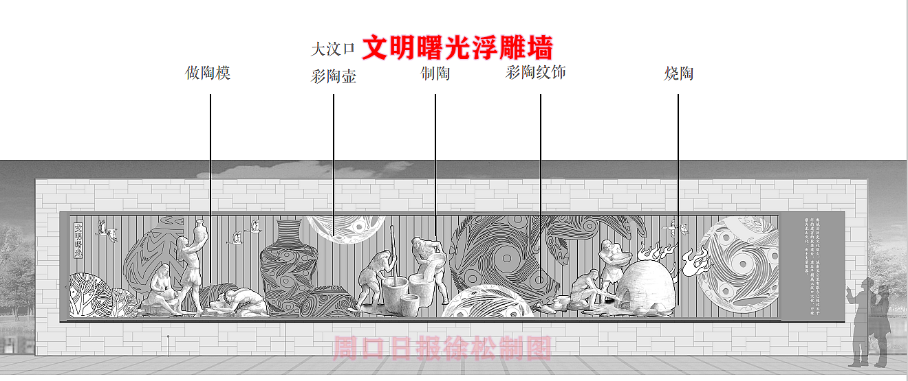 府東路北頭與鄲淮路交叉口占地近30畝的文化廣場(chǎng)是調(diào)水渠“三段銜一園”景觀中核心形象段之一。除了綠樹、百花、清流、步道,以及音樂燈光噴泉、西側(cè)建設(shè)有接近生態(tài)自然的親水觀光平臺(tái)之外,這里的5塊浮雕文化墻值得我們深入了解。這組浮雕墻讓古老與現(xiàn)代在這里交相輝映,昭示著無論社會(huì)和科技如何進(jìn)步,源遠(yuǎn)流長(zhǎng)的傳統(tǒng)文化永遠(yuǎn)是鄲城人的情感歸宿和精神家園。文化廣場(chǎng)的園路、綠地、建筑等都以鄲城歷史文脈為中心,將現(xiàn)代生活元素與歷史文化元素有機(jī)結(jié)合,營(yíng)造了一個(gè)文化與生態(tài)自然融合的新地標(biāo)。