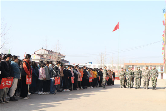 “一、二、三、四,立正……”2月22日,在鄲城縣巴集鄉(xiāng)第一初級中學操場上,學生們正在軍訓。參訓同學精神抖擻,稚嫩的臉龐增添一抹堅毅。該校利用開學前的有利時機,將養(yǎng)成教育融入軍訓,把軍訓變成了一場錘煉意志的思政教育課。