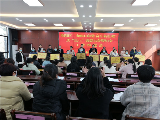 大會(huì)表彰了68名淮陽(yáng)區(qū)“三八”紅旗手、50名淮陽(yáng)區(qū)巾幗建功標(biāo)兵、10名淮陽(yáng)區(qū)先進(jìn)婦女工作者、19名淮陽(yáng)區(qū)農(nóng)村致富女能手、32名淮陽(yáng)區(qū)抗疫巾幗先進(jìn)個(gè)人榮譽(yù)稱(chēng)號(hào)、10個(gè)淮陽(yáng)區(qū)“三八”紅旗集體、10個(gè)淮陽(yáng)區(qū)巾幗文明崗、10個(gè)淮陽(yáng)區(qū)先進(jìn)基層?jì)D女組織。