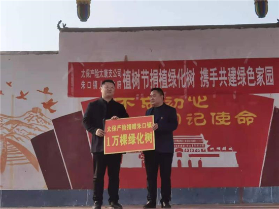 “這楸樹作為行道綠化,真不賴,現(xiàn)在栽上澆點(diǎn)水就能活……”在太康縣朱口鎮(zhèn)周寨村參加捐贈儀式的洼陳村村民代表張紅飛說。3月12日,植樹節(jié)當(dāng)日,太康縣朱口鎮(zhèn)與太平洋保險(xiǎn)財(cái)產(chǎn)保險(xiǎn)公司周口支公司在周寨村舉行了“植樹節(jié)捐植綠化樹,攜手共建綠色家園活動”,太平洋保險(xiǎn)財(cái)產(chǎn)保險(xiǎn)公司為朱口鎮(zhèn)捐贈綠化樹10000棵,助力朱口鎮(zhèn)建設(shè)綠色家園。太平洋保險(xiǎn)公司周口支公司總監(jiān)豆威、總經(jīng)理趙磊和鎮(zhèn)長江海洋等出席了會議,全鎮(zhèn)52個(gè)村黨支部書記、100多名群眾代表參加了會議。