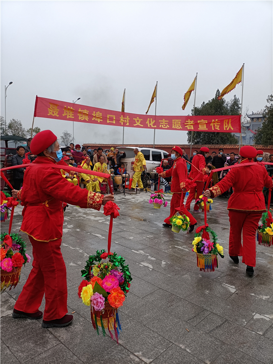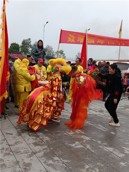 二月二,龍?zhí)ь^。3月14日,西華縣女媧城門前的廣場上,寫著“聶堆鎮(zhèn)埠口村文化志愿者宣傳隊(duì)”的紅色條幅前吸引了眾多游人。這些志愿者們用群眾喜聞樂見的舞獅、戲曲等傳統(tǒng)文藝節(jié)目,自編自演脫貧攻堅(jiān)給村民們帶來的新變化,宣傳黨的富民政策,鼓勵大家參與到鄉(xiāng)村振興工作中。