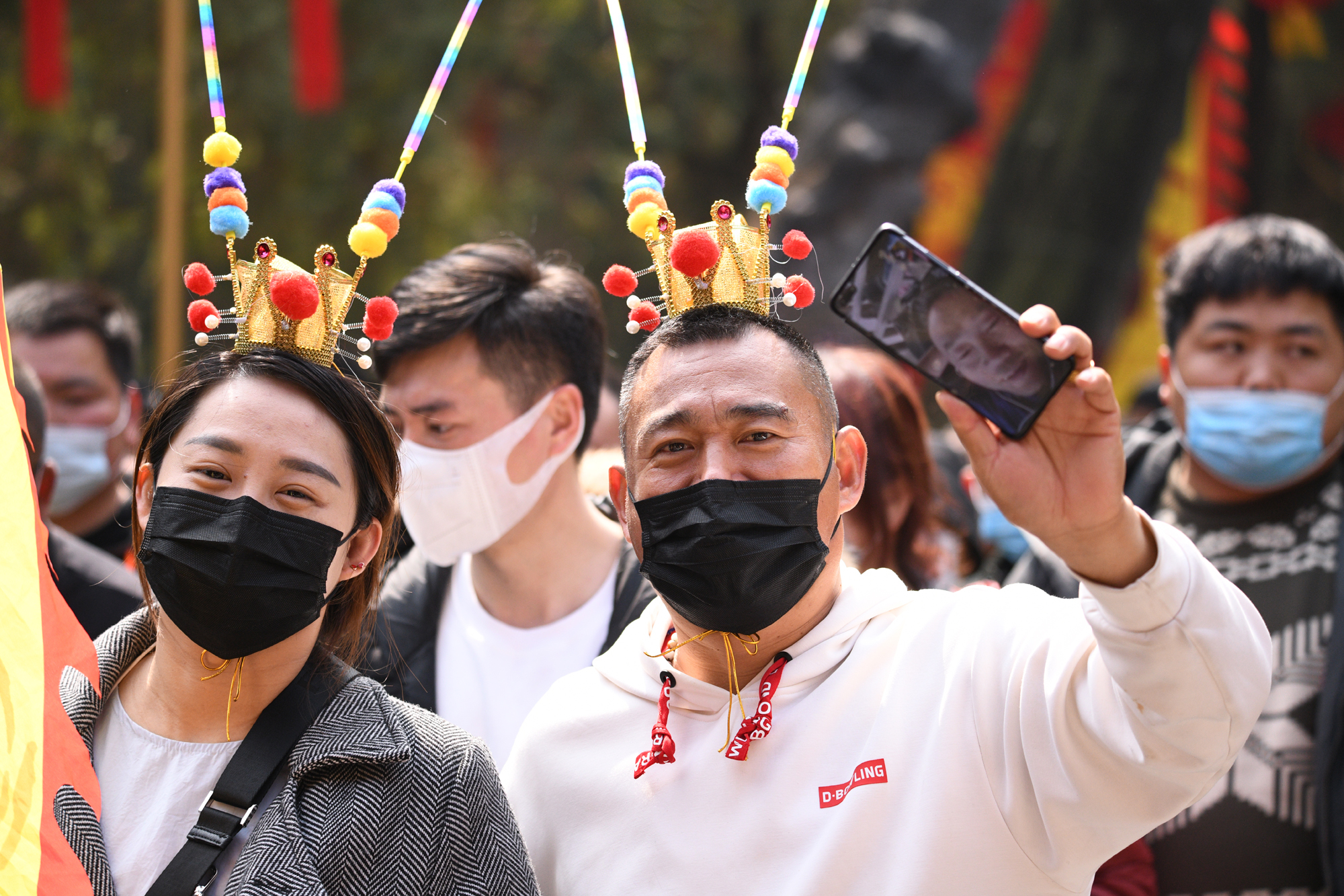 帥氣游客逛廟會(huì)不忘分享開心