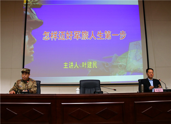 授課中,葉建民教授結(jié)合當(dāng)前國際國內(nèi)形勢(shì)和自身經(jīng)歷,深刻剖析了強(qiáng)國強(qiáng)軍的重要意義。為即將參軍入伍的“準(zhǔn)新兵”,如何端正入伍動(dòng)機(jī)、適應(yīng)部隊(duì)生活、弘揚(yáng)尚武精神、立志軍營建功立業(yè),指明了前進(jìn)方向。葉教授整個(gè)授課見解獨(dú)到、分析透徹,語言精彩、內(nèi)涵深刻,讓人深受啟發(fā)、獲益匪淺,授課過程中多次爆發(fā)熱烈的掌聲。