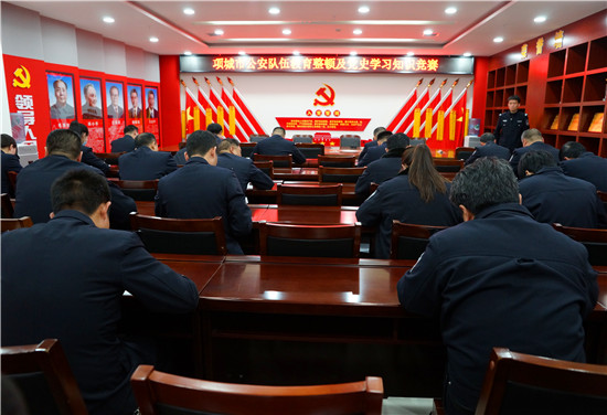 為進一步提升民警政治理論水平,切實加強隊伍教育整頓學習教育環(huán)節(jié)各項工作,結合當前實際情況,3月18日下午,項城市公安局精心組織開展隊伍教育整頓理論及學黨史知識競賽。局屬50余個單位各派民警代表參加了比賽,現(xiàn)場采取閉卷考試的方式進行。