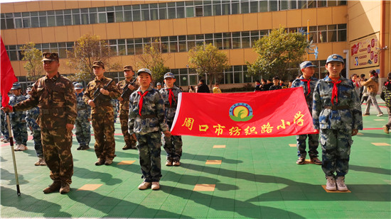 3月25日,周口紡織路小學(xué)學(xué)生正在參加“國(guó)防教育進(jìn)校園”主題活動(dòng),一天下來,站軍姿、學(xué)旗語、體驗(yàn)迫機(jī)炮、觀看戰(zhàn)術(shù)表演和戰(zhàn)爭(zhēng)情景模擬等,讓孩子們懂得“祖國(guó)神圣不可侵犯”,愛軍報(bào)國(guó)意識(shí)大大增強(qiáng)。