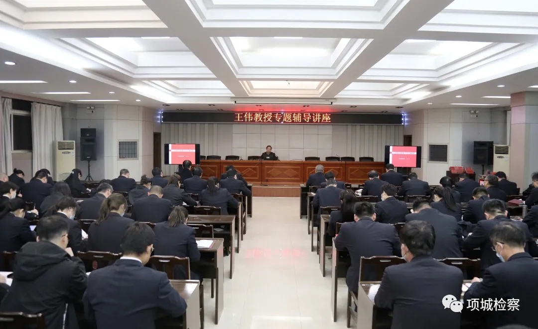 為推動(dòng)檢察隊(duì)伍教育整頓學(xué)習(xí)教育環(huán)節(jié)往深里走、往實(shí)里去,3月22日晚,項(xiàng)城市檢察院邀請(qǐng)周口市委黨校副教授王偉到“檢察夜?!睘楦删M(jìn)行黨建知識(shí)專題講座,夯實(shí)政治教育根基,提升干警思想政治素質(zhì)。王偉以《以黨建引領(lǐng)檢察工作高質(zhì)量發(fā)展》為題,從“背景闡釋:深刻認(rèn)識(shí)黨建時(shí)代內(nèi)涵”、“歷史演進(jìn):準(zhǔn)確把握基層組織作用”“路徑拓展:科學(xué)理解基層黨建手段”、“強(qiáng)發(fā)展、協(xié)調(diào)發(fā)展、高質(zhì)量發(fā)展。 王偉邊講解邊播放ppt課件。其報(bào)告主題鮮明、邏輯清晰,內(nèi)容豐富、語(yǔ)言生動(dòng),旁征博引、貫古通今,深入淺出、通俗易懂,讓干警美美享受一堂黨建教育“大餐”。