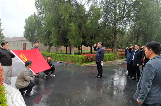 在五七干校舊址,大家通過觀看館內(nèi)大量留存的圖片、文字、實物等珍貴資料,再現(xiàn)了老一輩黨員干部在困境中堅持服務(wù)基層、服務(wù)百姓的感人場景,受到了一次鮮活的革命傳統(tǒng)教育和精神洗禮。紛紛為“五七”干校干部職工身處逆境樂觀向上、艱苦奮斗的精神點贊。隨后,在鮮紅的黨旗下,大家莊嚴地舉起右拳,重溫了入黨誓詞。