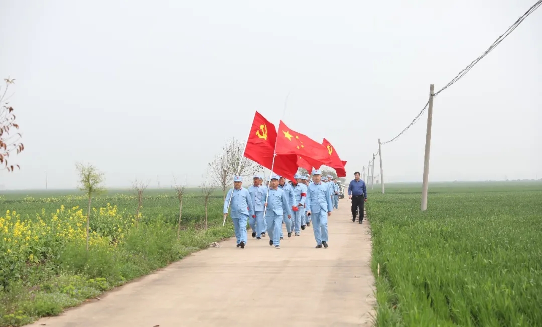 “我一定要跟著大部隊(duì)走,絕不掉隊(duì),不給紅軍前輩抹黑?!眲倓傋鐾晔中g(shù)的七一村黨支部書記何治安斬釘截鐵地說。在七二村,熱情好客的七里倉群眾不僅給“大軍”送來了西紅柿、黃瓜、茶雞蛋、香蕉等補(bǔ)給品,還表演了“祖國你好”、“美麗生活”等扇子舞,再現(xiàn)了當(dāng)年紅軍到哪都受人民群眾擁戴的情景,同志們的疲憊一下子煙消霧散.....按照拓展行程安排,在盆李村的“周口市第一個(gè)農(nóng)村黨支部舊址”,同志們進(jìn)行了參觀瞻仰和重溫入黨誓詞等活動(dòng),回顧了歷史,緬懷了先烈,震撼了心靈,錘煉了黨性。