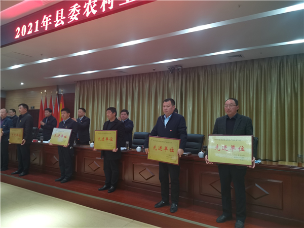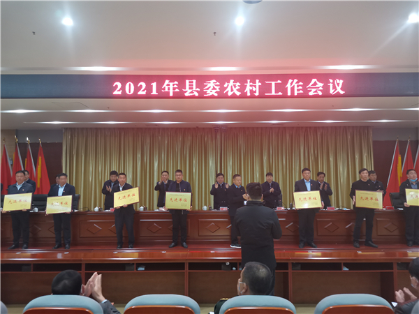 郭俊濤就貫徹落實(shí)會議精神及下一步農(nóng)村工作進(jìn)行具體安排部署??h委副書記許四軍宣讀了縣委、縣政府關(guān)于表揚(yáng)2020年度農(nóng)業(yè)農(nóng)村工作先進(jìn)單位、先進(jìn)個(gè)人的通報(bào)。會議還對受表彰的先進(jìn)單位代表進(jìn)行了頒獎。