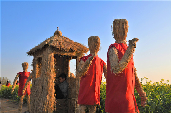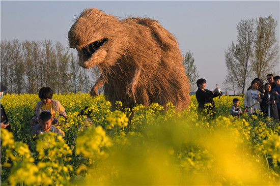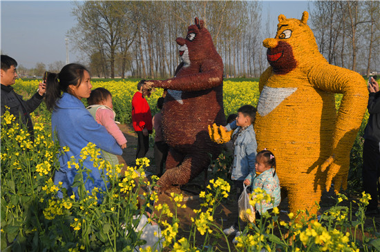 4月5日上午,在商水縣鄧城鎮(zhèn)沙潁河畔萬畝油菜花海,來自周邊縣市區(qū)和附近鄉(xiāng)鎮(zhèn)的群眾一撥接一撥地駕車到這兒打卡游玩,特別是卡通稻草人景點(diǎn)內(nèi)熱鬧非凡。
