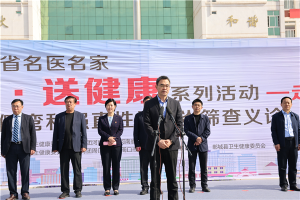 羅文閣致歡迎詞。她說,只有全民健康才有全面小康。今天,河南省在校青少年脊柱側(cè)彎和強(qiáng)直性脊柱炎篩查義診活動(dòng)走進(jìn)鄲城,對(duì)鄲城孩子們的健康成長(zhǎng)是件好事、實(shí)事,我們將全力以赴,做好配合,爭(zhēng)取讓項(xiàng)目惠及更多患者,同時(shí)希望全縣廣大醫(yī)護(hù)工作者以這次活動(dòng)為契機(jī),珍惜難得的學(xué)習(xí)機(jī)會(huì),從名醫(yī)名家身上,學(xué)習(xí)出類拔萃的醫(yī)療技術(shù)、德藝雙馨的大醫(yī)情懷、心系群眾的高尚情操、不辭勞苦的敬業(yè)精神,不忘初心、牢記使命,勤學(xué)苦練、提升本領(lǐng),為鄲城創(chuàng)建國家健康縣城、做好鞏固拓展脫貧攻堅(jiān)成果同鄉(xiāng)村振興有效銜接作出更大貢獻(xiàn)。