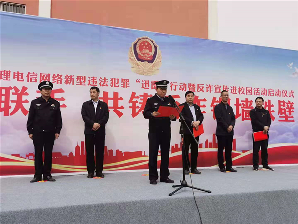 4月18日上午,鄲城縣打擊治理電信網(wǎng)絡(luò)新型違法犯罪“迅雷”行動(dòng)暨反詐宣傳進(jìn)校園活動(dòng)儀式在縣三高啟動(dòng)??h政府副縣長、公安局長陳鳳祥,縣政府辦公室主任賈培民,縣教體局黨組書記、局長羅明黨等出席啟動(dòng)儀式,縣打擊治理電信網(wǎng)絡(luò)新型違法犯罪工作各成員單位、縣公安局、縣三高分別組成代表隊(duì)2200余人參加啟動(dòng)儀式,儀式由賈培民主持。