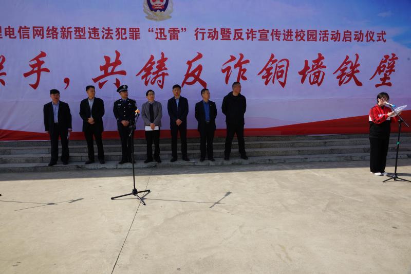 4月18日上午,項(xiàng)城市打擊治理電信網(wǎng)絡(luò)新型違法犯罪“迅雷”行動(dòng)暨反詐宣傳進(jìn)校園活動(dòng)啟動(dòng)儀式在項(xiàng)城體育館舉行。市委常委、政法委書記段曉,市人大常委會(huì)副主任張春志,市政府副市長(zhǎng)、公安局長(zhǎng)萬東偉,市政協(xié)副主席王養(yǎng)嶺及市委政法委副書記薛峰、市教體局長(zhǎng)陳敏等出席活動(dòng)。段曉、萬東偉分別講話。儀式由市政府辦公室副主任李金方主持。
