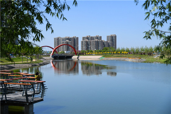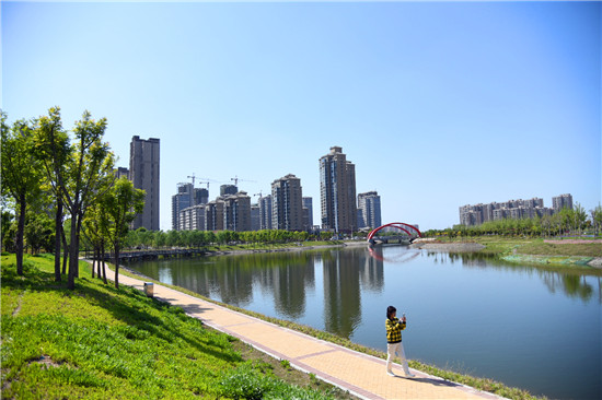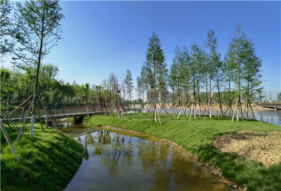 眼下雖不是詞中所描繪的初春時(shí)節(jié),但是暮春的水系風(fēng)光更具詩情畫意。女媧路魚翔湖是一處以水凈化、水景觀、水科普為主的濱河濕地游園。漫步于此,新綠點(diǎn)綴其中,步道曲徑通幽,河水清澈透明,頓覺神清氣爽。沙河玉盤落珠節(jié)點(diǎn),曲廊環(huán)繞,波光鱗鱗,垂柳慢舞,河流猶如飄帶蜿蜒流淌,一路步行聞花香聽鳥鳴,繪出一幅唯美畫卷。②9