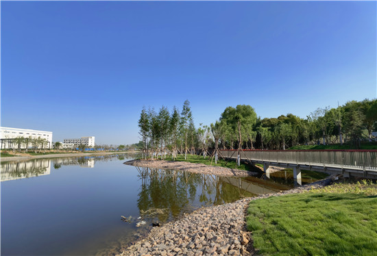 與城區(qū)的各個(gè)游園相比,此處稍顯僻靜,翠陰蒙密,再加上流水淙淙,更有風(fēng)物清幽之感。閑暇之時(shí),三三兩兩的居民結(jié)伴散步,大自然的靜謐與靈動(dòng)在這里相交相融,讓人心曠神怡。