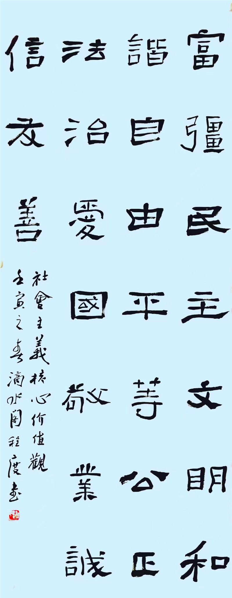程度 中國書法家協(xié)會理事、隸書委員會委員,北京書法家協(xié)會理事,北京市朝陽區(qū)書法家協(xié)會秘書長(社會主義核心價(jià)值觀)