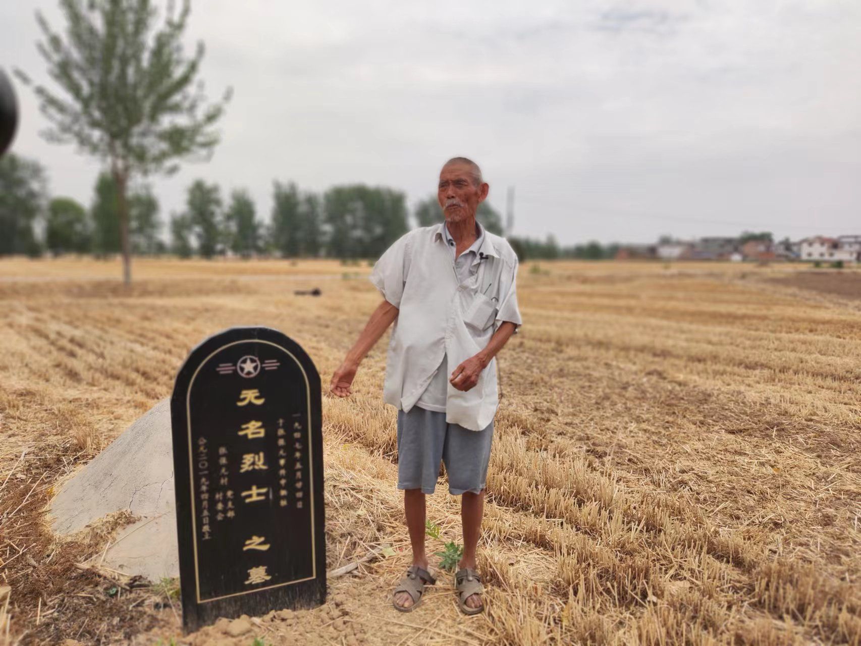 87歲的張金堯在無名烈士墓前講述小八路的故事