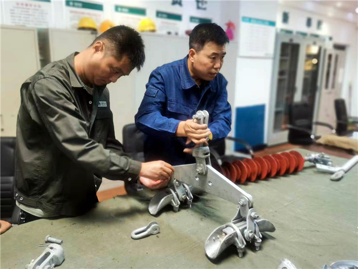 為把學(xué)習(xí)落到實處,提高班組成員主動學(xué)習(xí)的積極性,在當(dāng)日的學(xué)習(xí)中,經(jīng)驗豐富的老師傅還手把手地帶領(lǐng)青年員工對金具進(jìn)行現(xiàn)場組裝。他們積極討論,相互切磋,取長補(bǔ)短。