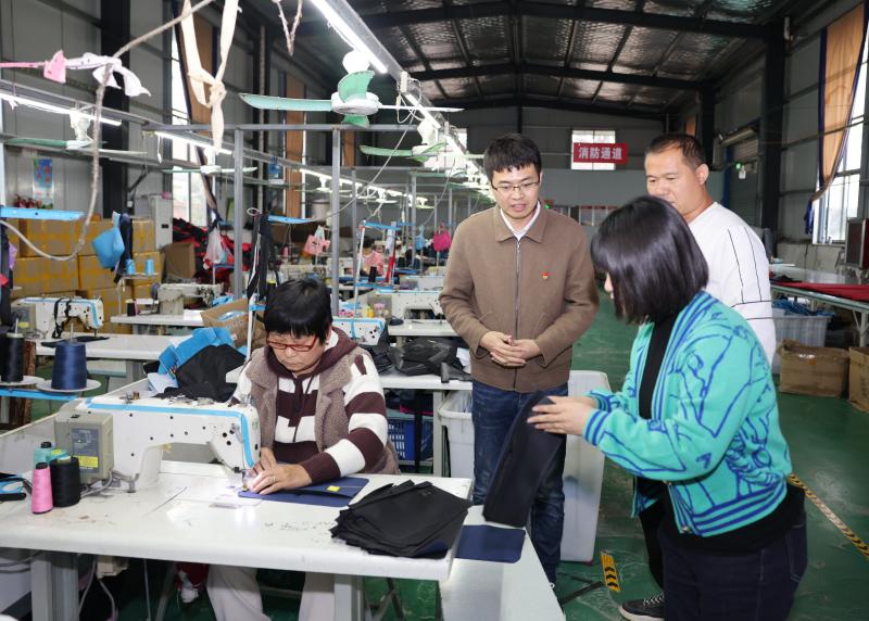 同樣在村頭撈到金的還有返鄉(xiāng)創(chuàng)業(yè)者趙國興。趙國興早年在南方某箱包廠打工并成為經(jīng)理。在沿海城市產(chǎn)業(yè)轉(zhuǎn)移的大潮下,趙國興收到了家鄉(xiāng)的呼喚,毅然帶著妻子返鄉(xiāng),租賃村里的扶貧車間辦起了眾誠箱包有限公司。