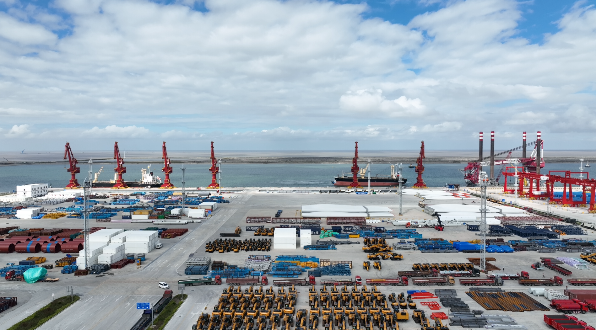 站在呂四起步港港區(qū)綜合樓的最高處,極目遠(yuǎn)眺,港口景觀盡收眼底。港池父親般寬闊的臂膀,將一艘艘越洋而來(lái)的萬(wàn)噸巨輪攬入懷中;挖掘機(jī)和風(fēng)機(jī)葉片被“碼”得整整齊齊,正待裝船出口;機(jī)器不停運(yùn)轉(zhuǎn),給停靠的船只裝卸貨物;重型貨柜車進(jìn)出有序、川流不息。而令人驚奇的是,偌大的港口幾乎沒(méi)有看到一個(gè)工作人員。