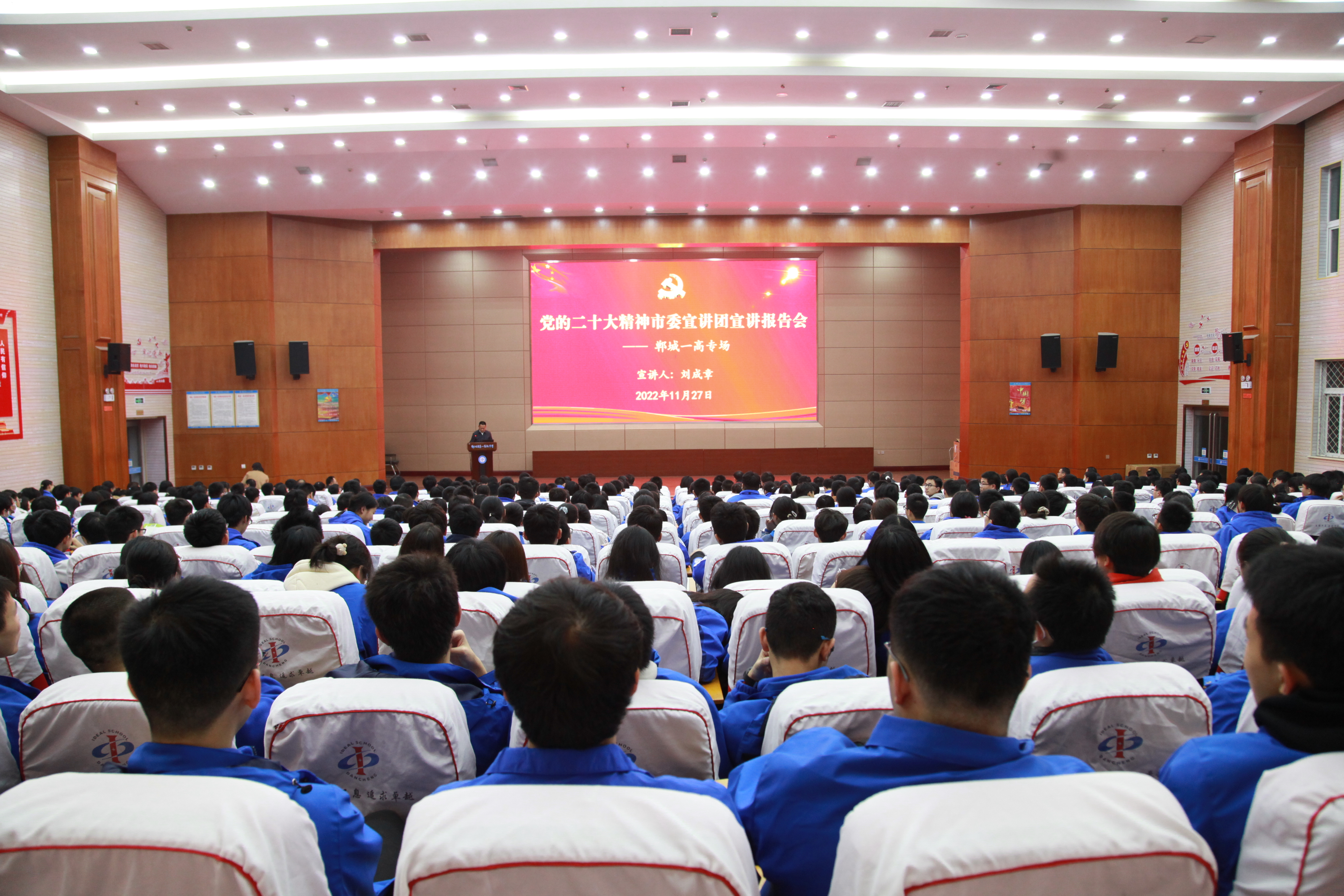“我們將牢牢抓住國家‘縣中提升計劃’政策機遇,在教育、教學(xué)、服務(wù)、管理等方面進行優(yōu)化與完善,在拉高標桿中爭先進位,在加壓奮進中開創(chuàng)新局,提升學(xué)校辦學(xué)水平,努力讓更多農(nóng)村孩子接受優(yōu)質(zhì)教育,為全面推進鄉(xiāng)村振興提供更強大的人才和智力支撐?!?1月27日晚,黨的二十大精神市委宣講團鄲城一高專場宣講報告會舉行,黨的二十大代表、市委宣講團成員、鄲城一高黨委書記、校長劉成章以《學(xué)深悟透新精神 培根鑄魂育新人》為題作了宣講報告。400余名師生代表聆聽。
