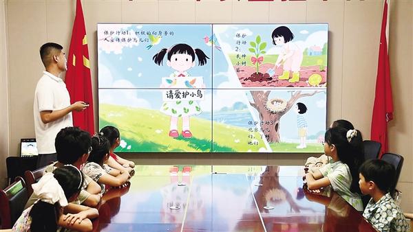 返鄉(xiāng)大學(xué)生志愿者魏柏宇向孩子們介紹珍稀鳥類的外形特征、生活習(xí)性與生存現(xiàn)狀。近日,鄲城縣自然資源局組織工作人員、返鄉(xiāng)大學(xué)生志愿者到該縣新城街道秀水社區(qū)開辦科普課堂,旨在通過生動(dòng)講解與互動(dòng)實(shí)踐,深化社區(qū)青少年對(duì)生態(tài)保護(hù)的認(rèn)識(shí)。記者 徐松 通訊員 陳吳陸 攝